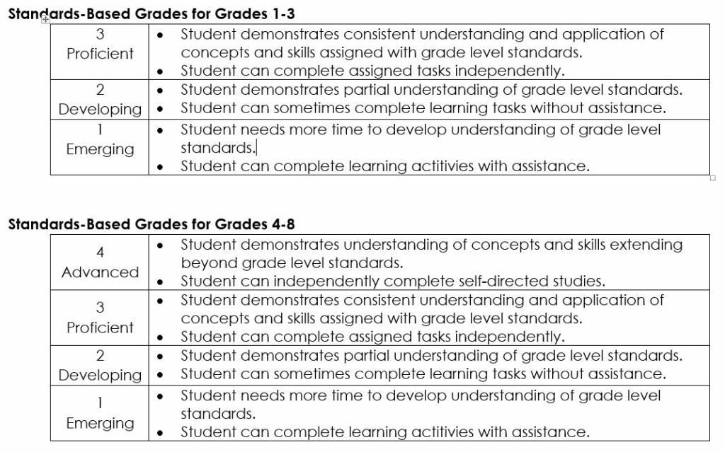 - Grading is standards-based and reflects what students know and are able to do.